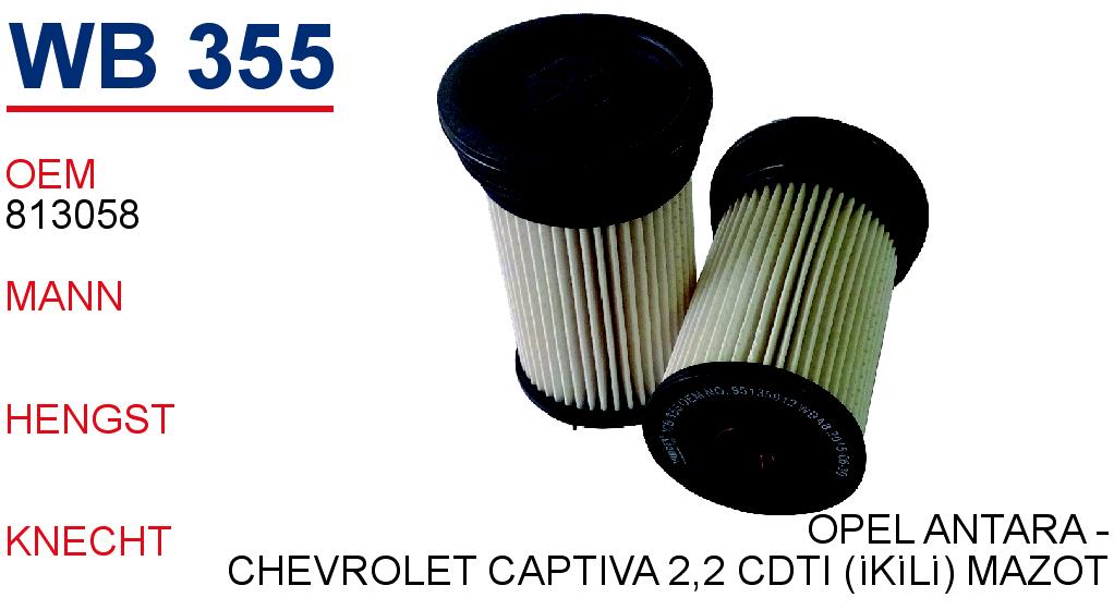 WB 355 OPEL ANTARA -CHEVROLET CAPTİVA 2,2 CDTİ (İKİLİ) 95135912 Yakıt/Mazot Filtresi