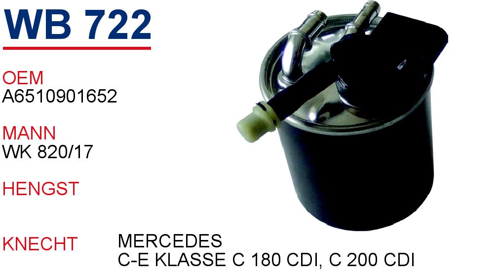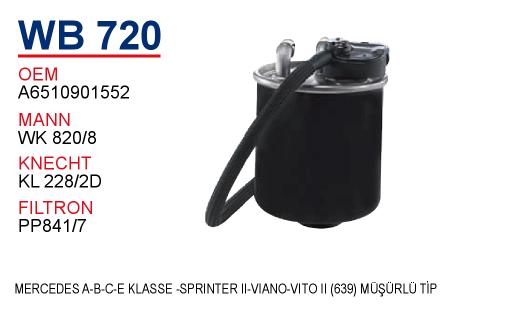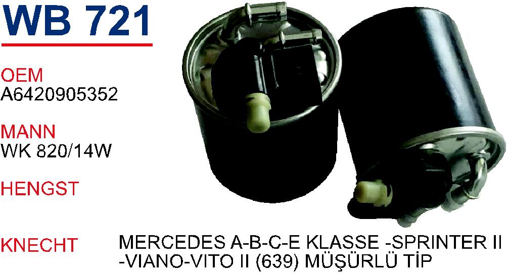 WB 721 MERCEDES A-B-C-E KLASSE -SPRINTER II-VİANO-VİTO II (639) MÜŞÜRLÜ TİP A6420905352 Yakıt/Mazot Filtresi