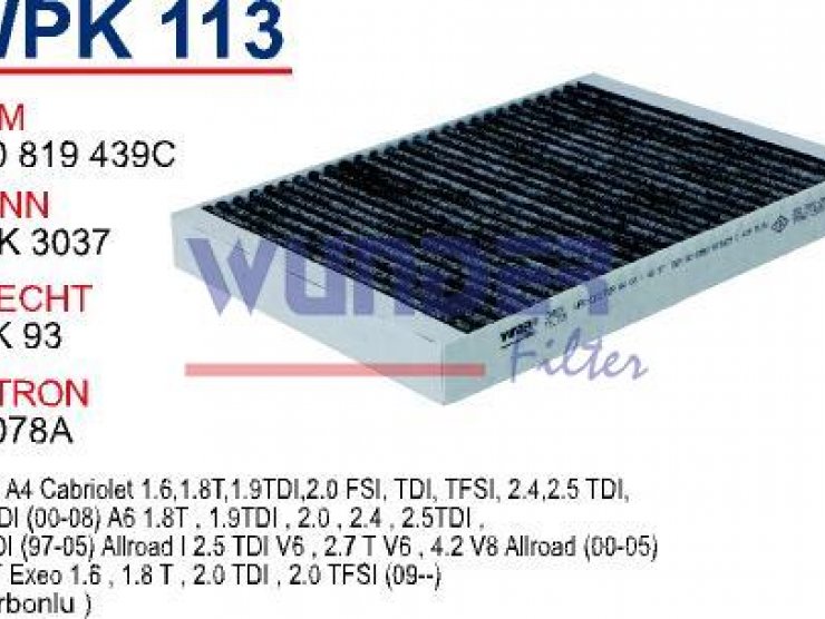 WPK 111 AUDi A6 94-97 KARBONLU 4A1 820 367 Polen Filtresi