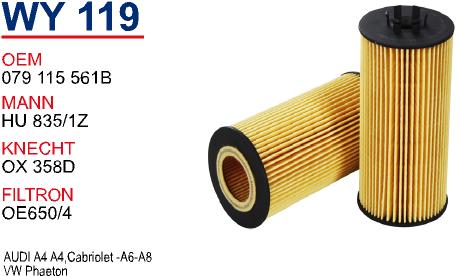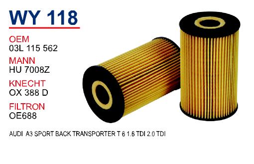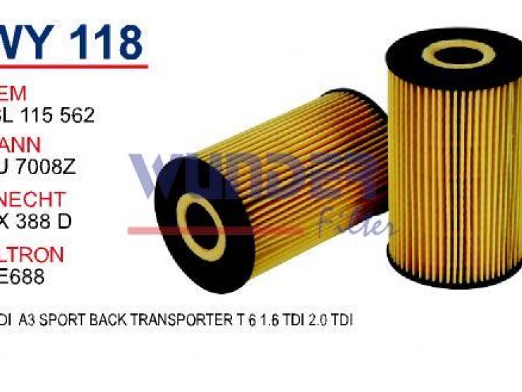 WY 118 AUDI -A3 SPORTBACK (8PA) - 1,6 TDİ VW T-6 2.0 TDİ 03L 115 562 Yağ Filtresi