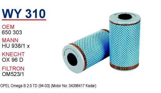 WY 301 OPEL VECTRA 1.8 650308 Yağ Filtresi