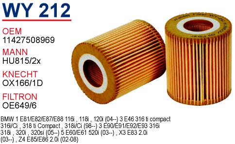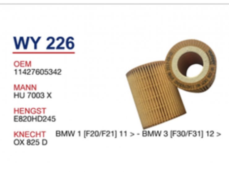 WY 209 BMW E46 320 d - E39 520 d M47 11422247018 Yağ Filtresi