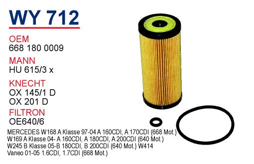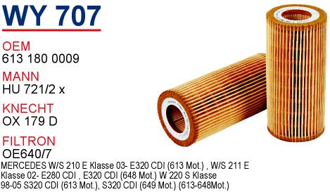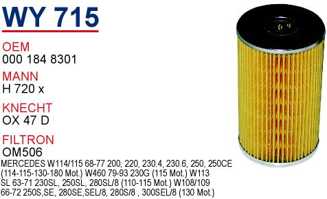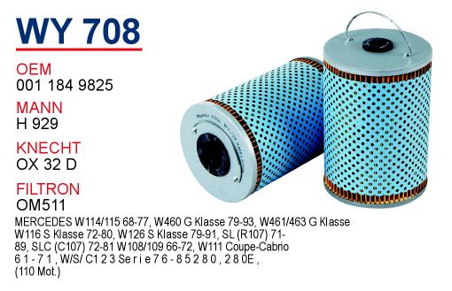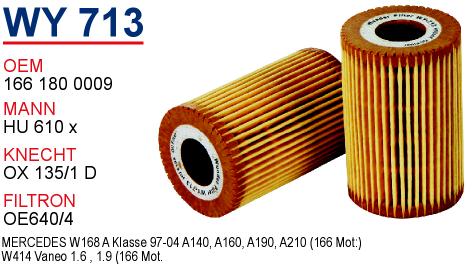 WY 704 MERCEDES 124 - 201 KASA 190 - 200 102 MOTOR 103 184 0201 Yağ Filtresi