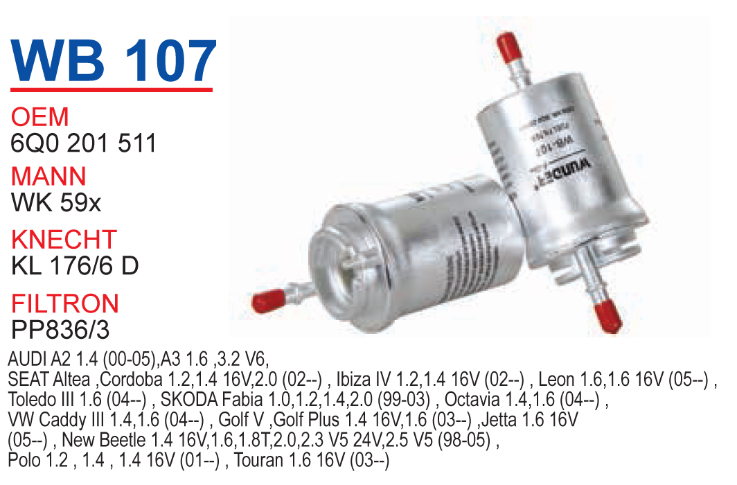 WB 100 VOLKSWAGEN ( TOMBUL TIRNAKSIZ ) 1H0 201 511 Yakıt/Benzin Filtresi