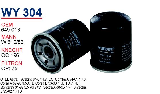 WY 302 OPEL VECTRA B - FRONTERA - OMEGA 2.0 DTI 56 50 319 Yağ Filtresi